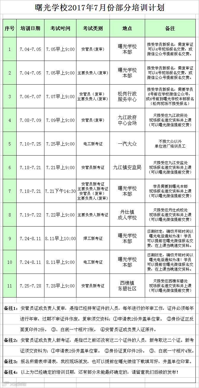 (7.5更新)曙光7月部分开班信息 + 曙光微信报名交费流程 佛山市曙安安全技术服务公司