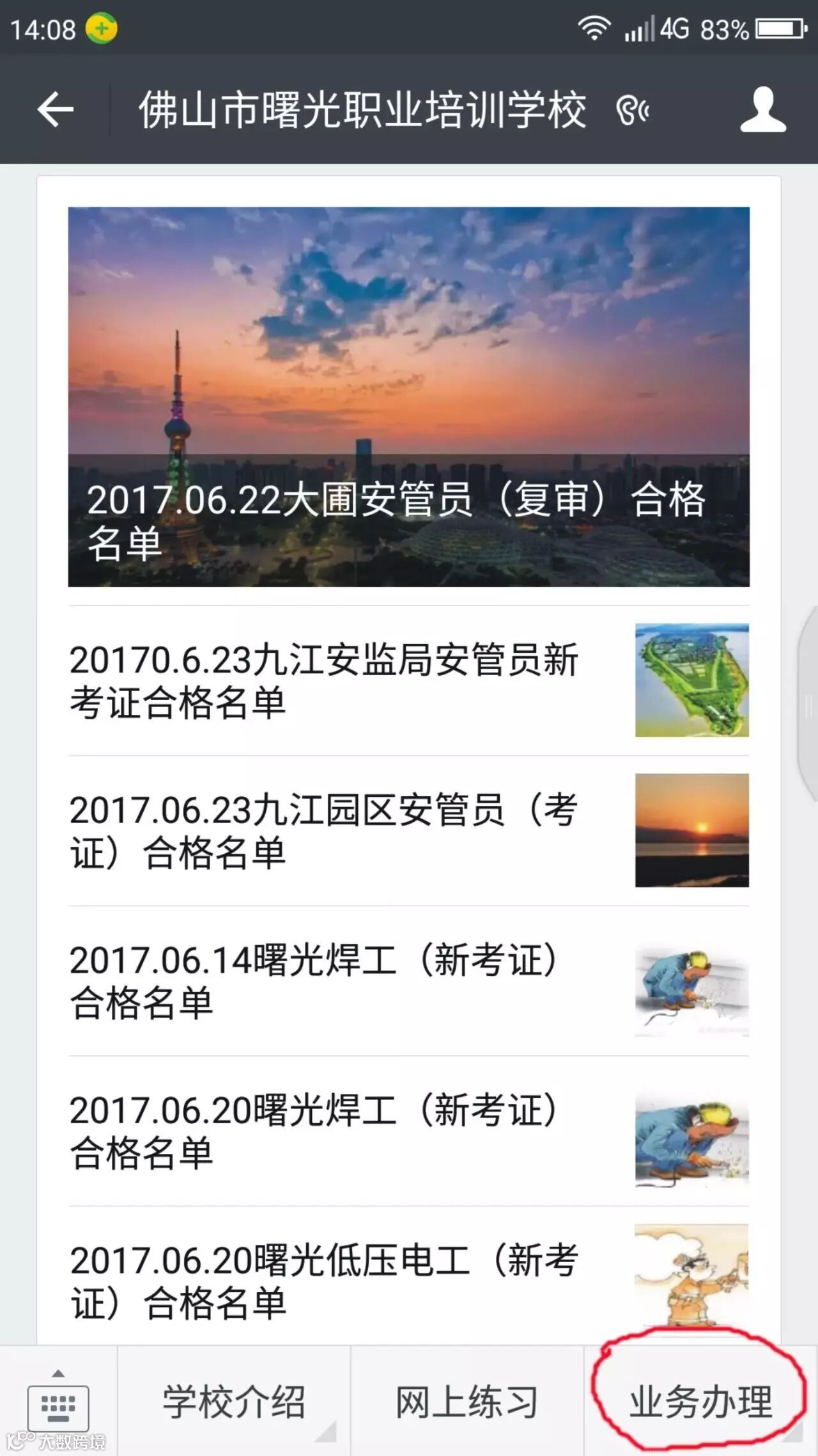 1、关注我们的微信公众号后,点击右下角的业务办理: