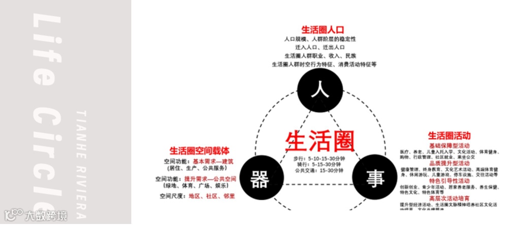 从宏观上看,“生活圈”指以居民生活居住地为同心圆所接触的人、事、物,包括生活配套设施与服务,重点涵盖购物、经商、生活、休闲健身、交友、学校、医疗、文化活动等内容。