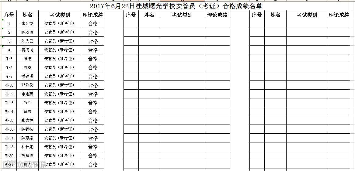 2017.06.22桂城曙光学校安管员(考证)合格名单