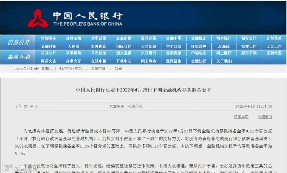 4月14日,央行召开会议,针对货币政策、房地产融资、金融稳定等热点问题进行回复;4月25日,央行宣布下调金融机构存款准备金率0.25个百分点。