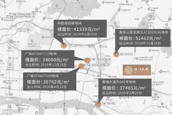 而在地价方面,天河也是逐年攀升。例如天河智谷板块,2014年核心板块牛奶厂首轮宅地供应,地价才1字头,2020年,地价已经去到了5字头,涨幅超过200%。