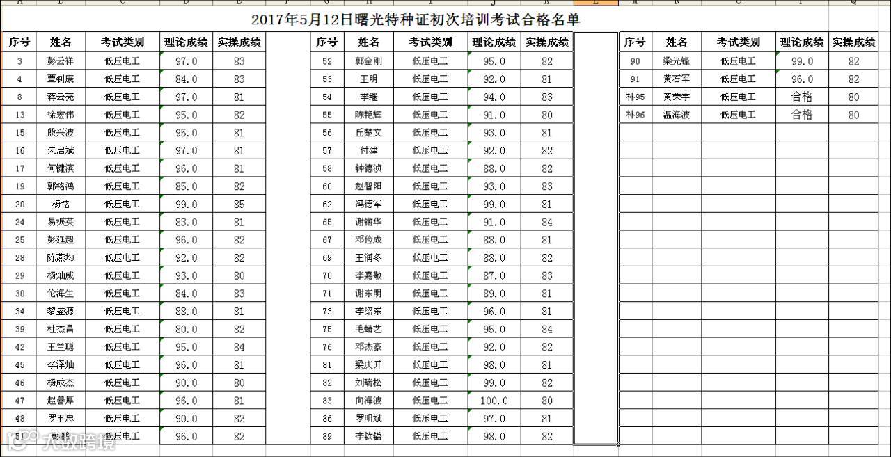 2017.05.12曙光电工新考证考试合格名单