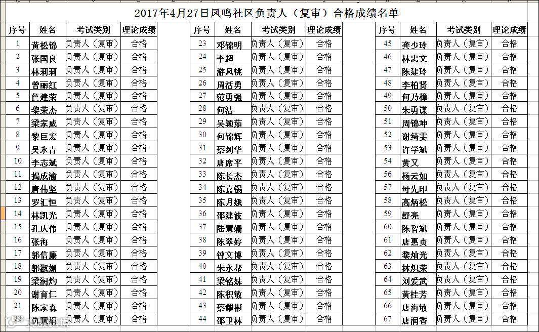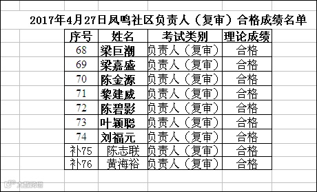 2017.04.27凤鸣社区负责人(复审)合格名单