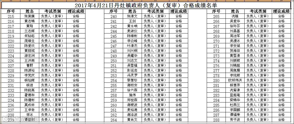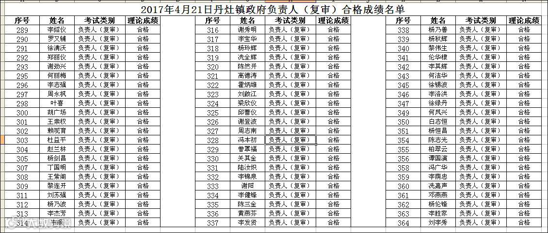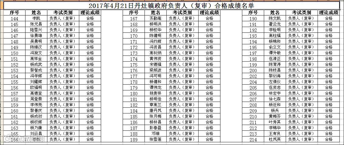 2017.04.21丹灶镇政府负责人(复审)上午场合格名单