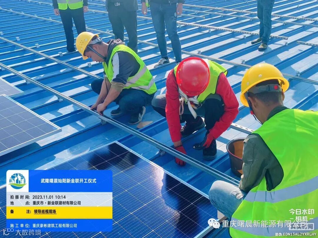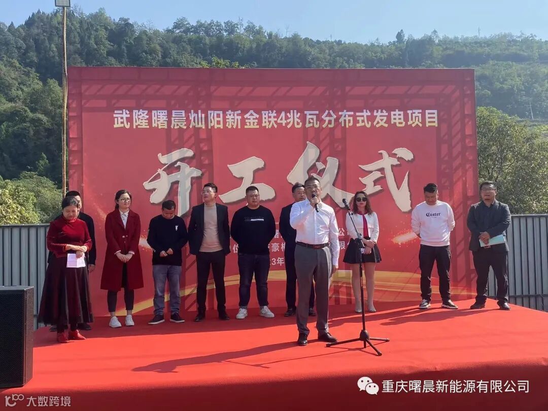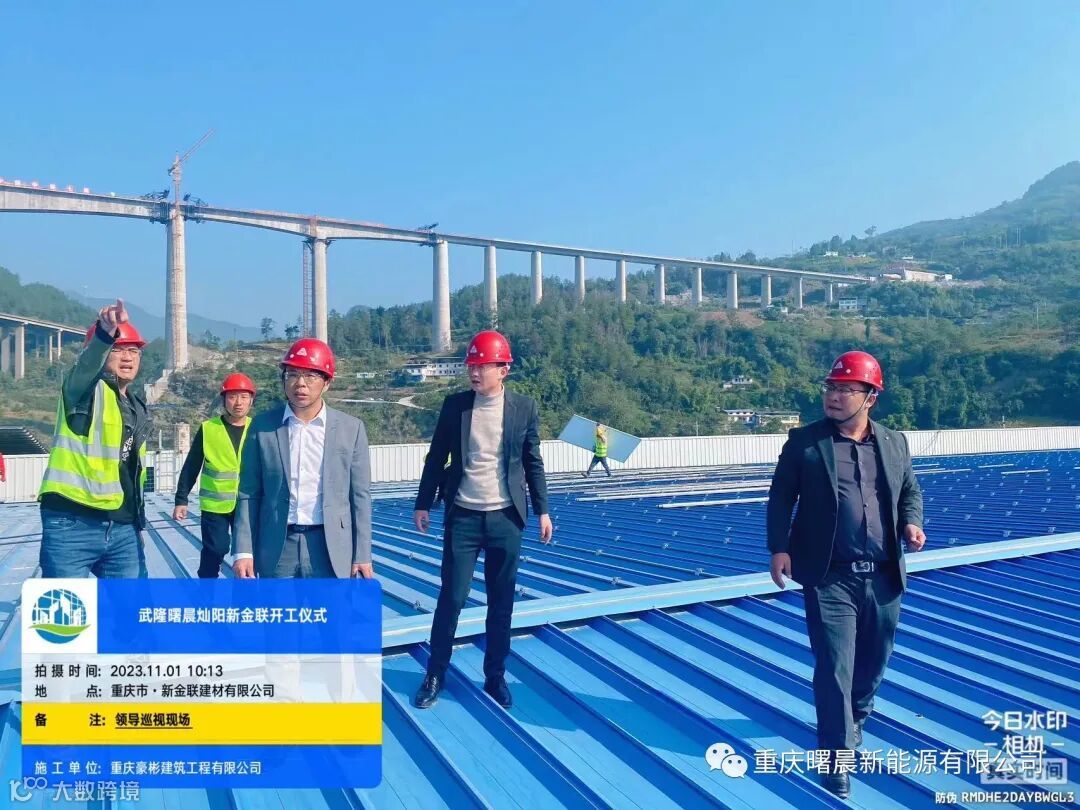 于2023年11月01日由重庆曙晨新能源有限公司董事长冉利灵带领各部门领导,并邀请新金联建材有限公司李总和杨总和重庆渝宏建筑规划设计有限公司总经理艾总等共同一起见证我们在重庆武隆新金联建材有限公司隆重举行光伏项目的开工仪式。首先,这个项目是我集团公司在家乡重庆自己开发,自己承建,自己持有的电站项目,标志着我们公司在重庆光伏领域迈出了坚实的一步,也标志着我公司在重庆光伏市场的全面启动。这是对公司发展战略的有力响应和实施,更是对新一轮经济转型升级的积极回应。