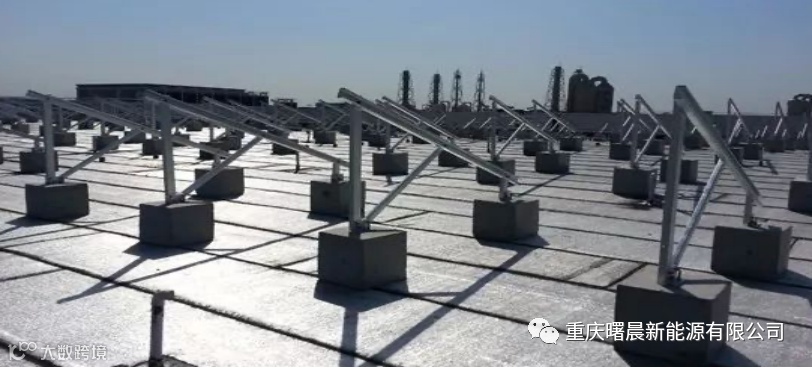 (2)安装方式混凝土屋顶一般采用混凝土配重块作为基础,配重块底部垫防水并用水泥浆稍作固定与找平后放置于屋面,主要利用配重自身重量稳固光伏,不对屋面钻孔等,由于直接放置于屋面上自然它不破坏屋顶原有结构,而实际设计安装过程中,这种基础会有各种各样的形式,如条形基础、方形基础、钢筋混凝土配重块+特种工程塑料支架等方案,但基本原理都是一样的。