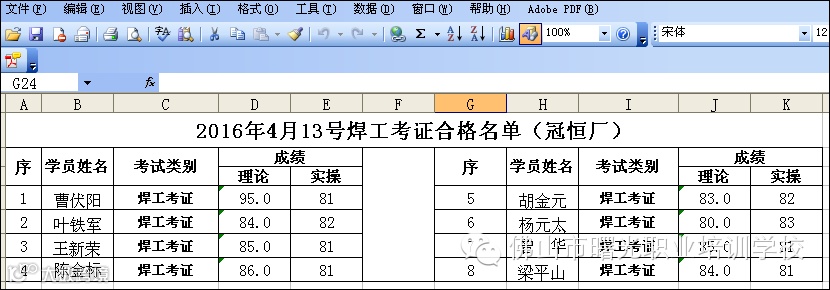 2016.4.13焊工考证成绩公布 佛山市曙安安全技术服务公司