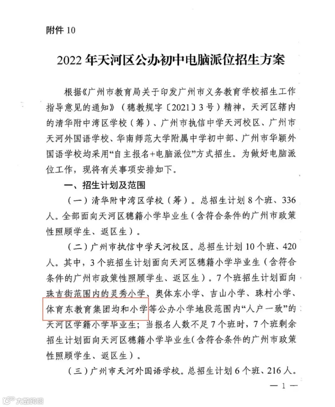 2022年天河区公办初中电脑派位招生方案