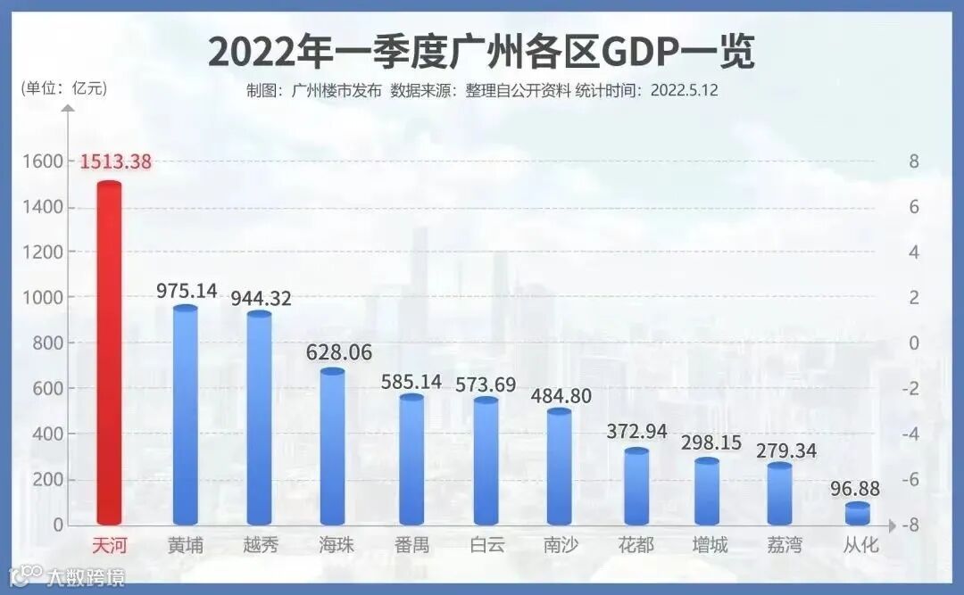 据统计,天河第一季度GDP突破1500亿,增长5.1%!其以全市1.87%的面积,贡献了全市22%以上的经济总量。(来源:广州市各区统计部门、羊城晚报、羊城派)