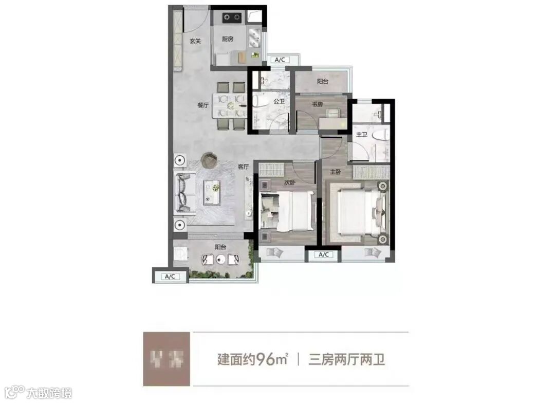 再看周边的一些产品,很多96平的户型,依旧做不出舒适的3房,多功能房面积也很小,实用性不高。