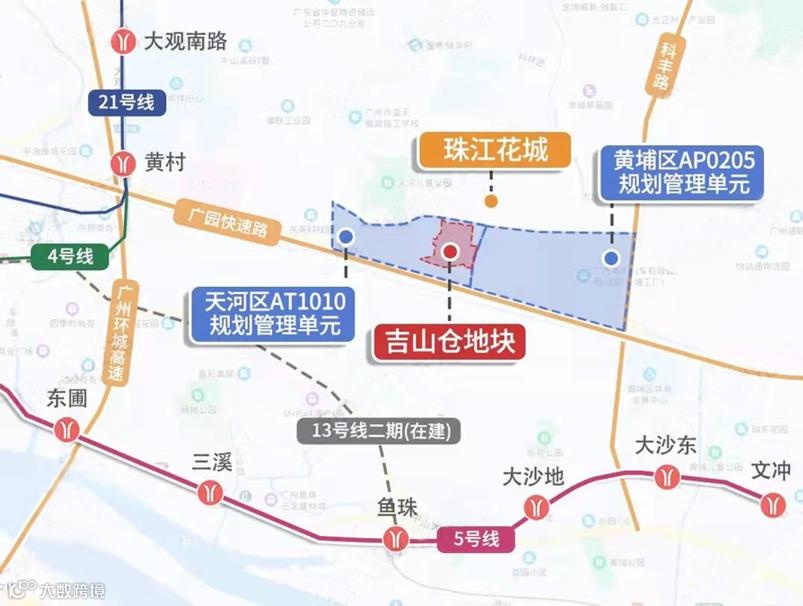 4月13日,广州市规划和自然资源局发布《广物控股集团在穗多宗用地统筹利用打包实施方案天河区5宗地块控制性详细规划》批前公示,共有5宗地块计划上新,而其中吉山仓地块,用地面积约16.68公顷,就在珠江花城项目南侧。
