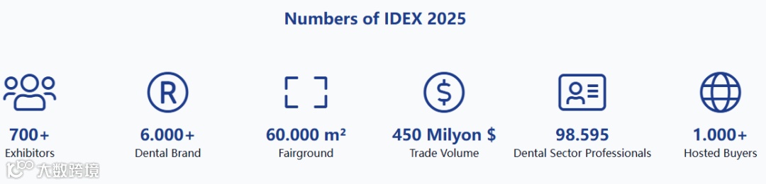 2025年土耳其国际牙科展(IDEX Istanbul)规模盛大,启用6个展馆,总展示面积超过60,000平方米。展会汇聚了近600家参展企业,来自全球30多个国家,展示品牌超过4000个,参展商满意度高达98%。