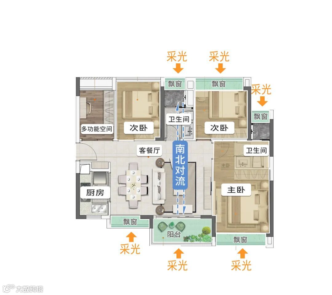 项目户型以设计创造价值,实用率约9成,同等面积多送一间房...