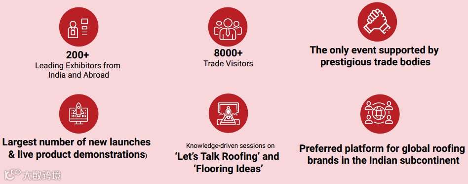 自2019年开始ROOF INDIA加入了FLOOR的主题,旨在为工业铺地材料、工业地板、地坪提供高端专业的技术和产品展示及交流平台。90%的中国展商已超过4年以上连续参展,足见ROOF INDIA在印度市场屋顶、屋面材料、建筑防水领域举足轻重的地位和分量。