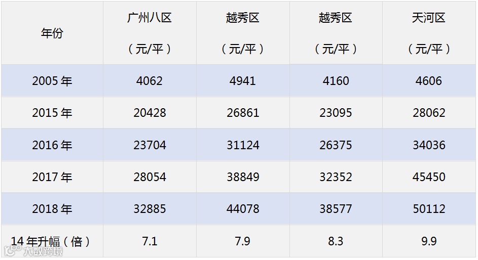 回望过去14年,广州九区的二手房价增值7.1倍,而天河增值9.9倍,全广州第一!