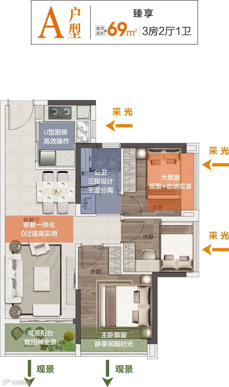 建面约69㎡臻稀三房