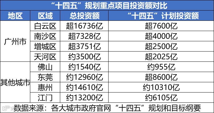 其中,白云区发布《白云区“十四五”规划和目标纲要》,显示白云区将发力524项重点建设工程,总投资额高达1.6万亿!