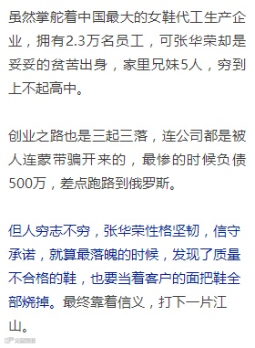 今天小编就来扒扒“中国女鞋教父”张华荣的创业之路: