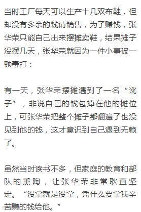 在那个年代,这样的事情好似家常便饭,张华荣没有办法,只有把所有的倔强,放到自己的鞋子上,并且坚持下去。
