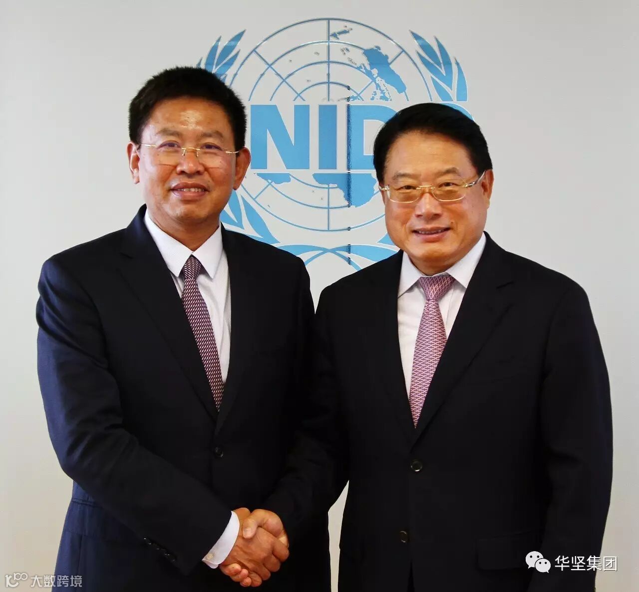 2017年8月15日, 联合国工业发展组织李勇总干事在维也纳接见了张华荣董事长率领的华坚集团代表团,双方就通过建立伙伴关系来共同促进包容与可持续的工业发展进行了积极和深入的探讨。