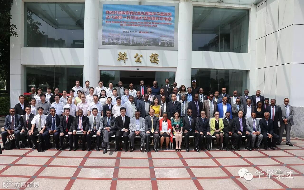 2015年09月08日,埃塞俄比亚总理海尔马里亚姆及代表团一行莅临华坚集团参观考察并合影留念