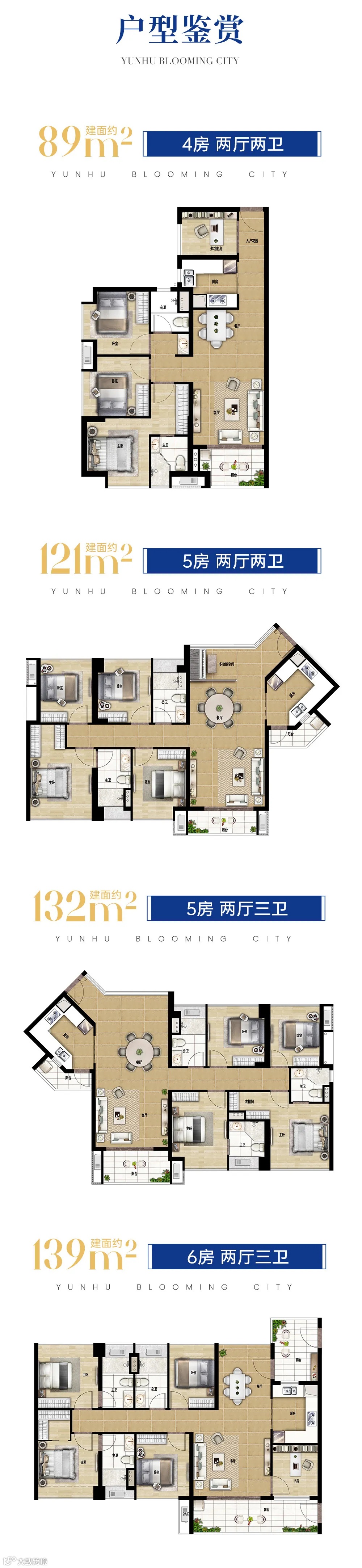 在建面约89㎡的空间里,实现3+1房户型;在建面约139㎡的户型设计上,创造5+1房,做到空间最大化设计!