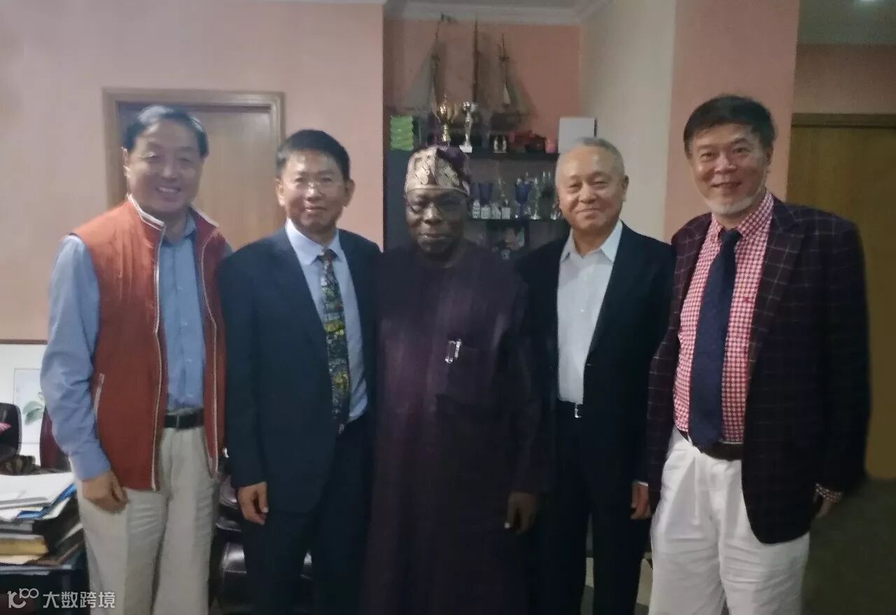 2017年9月4日,尼日利亚前总统奥巴桑乔(中)在家中会见了由张华荣先生(左二)率领的深圳市企业联合会代表团。