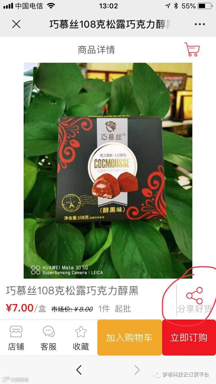 第一步,进入商品详情,点击,分享好货