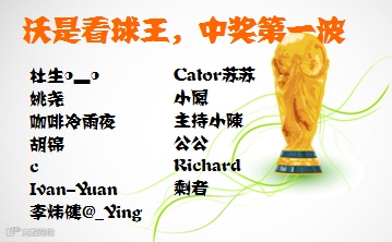亲爱的沃粉们,万众期待的巴西世界杯【沃是看球王】中奖第一波来啦!很激动有木有?一起来看看中奖粉丝有你吗?