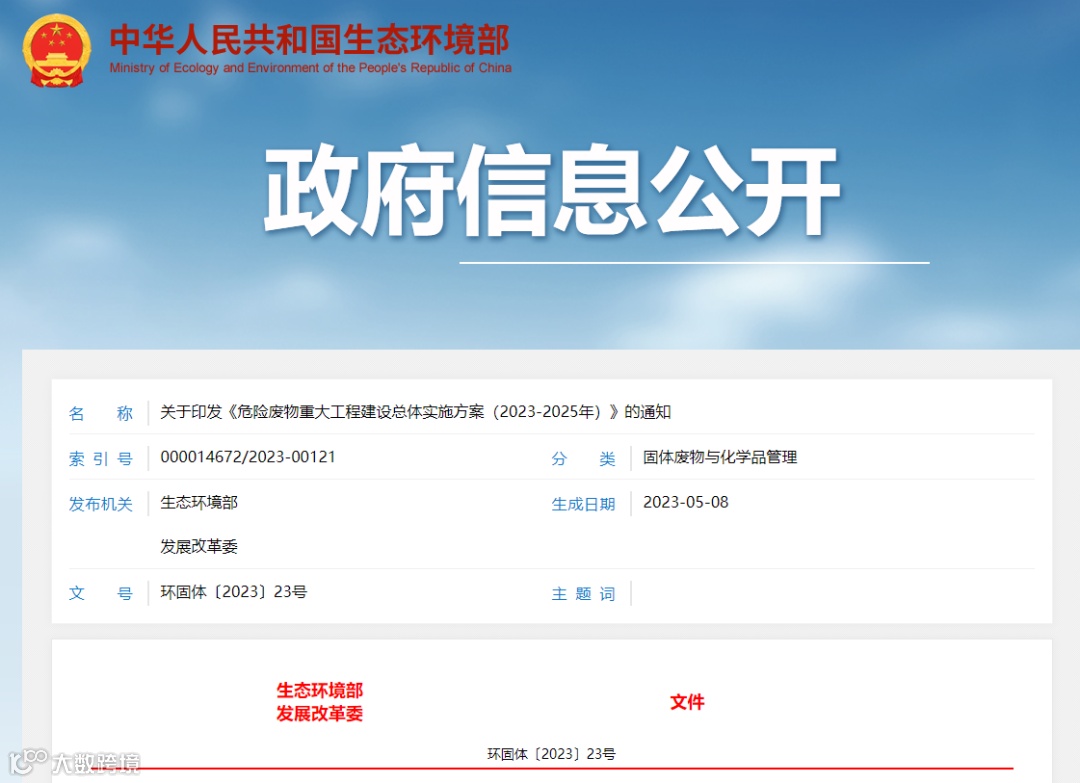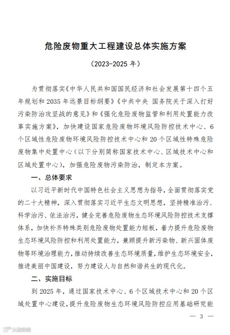 关于印发《危险废物重大工程建设总体实施方案(2023-2025年)》的通知