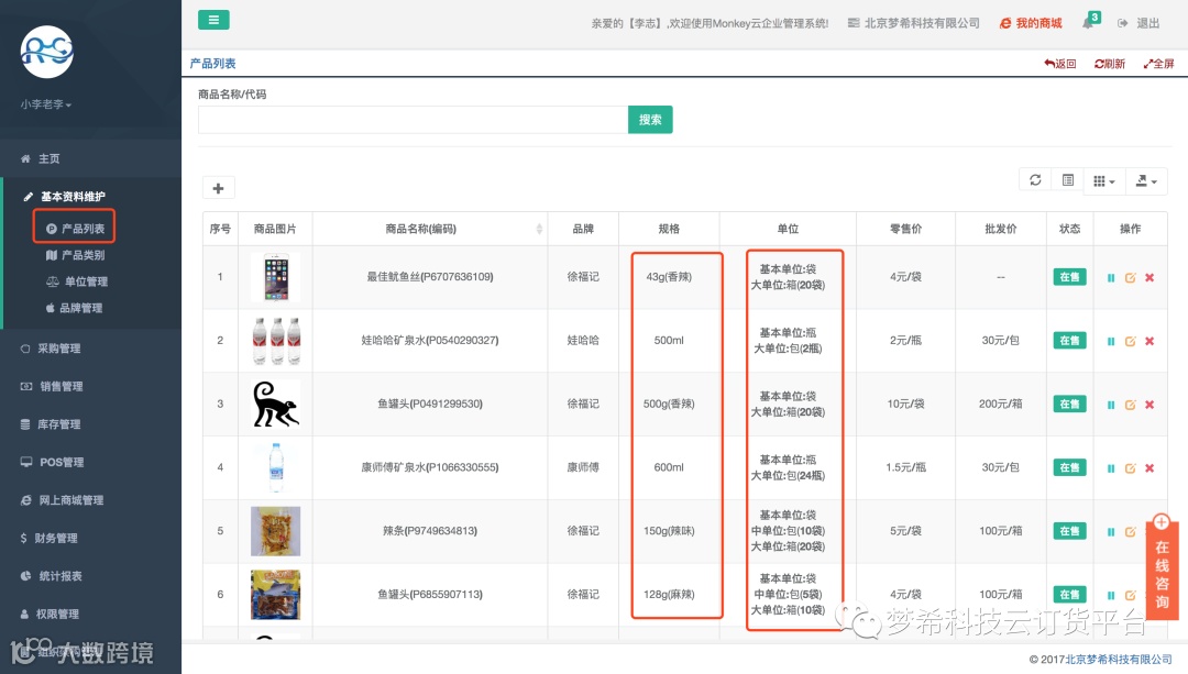 商家可以对商品按箱,包,袋等不同单位,不同规格进行详细展示