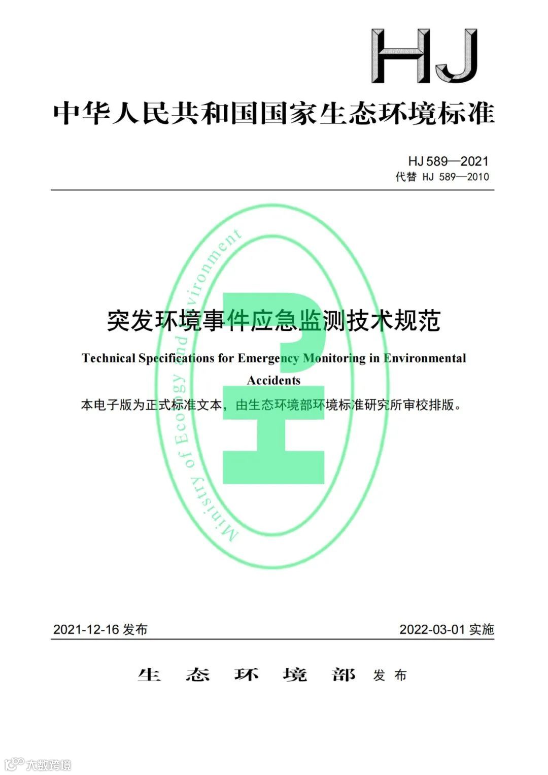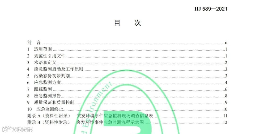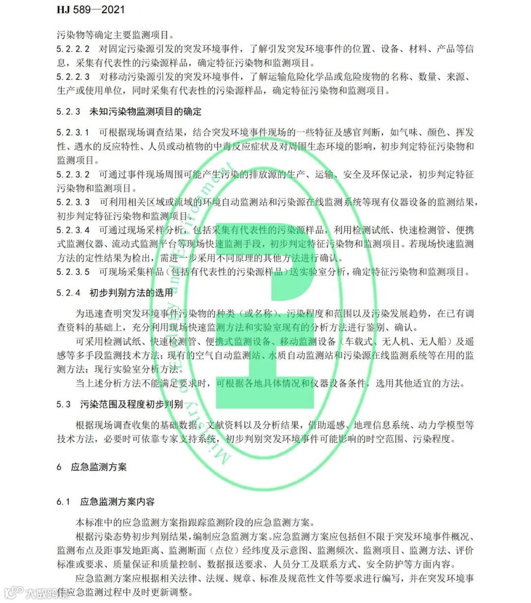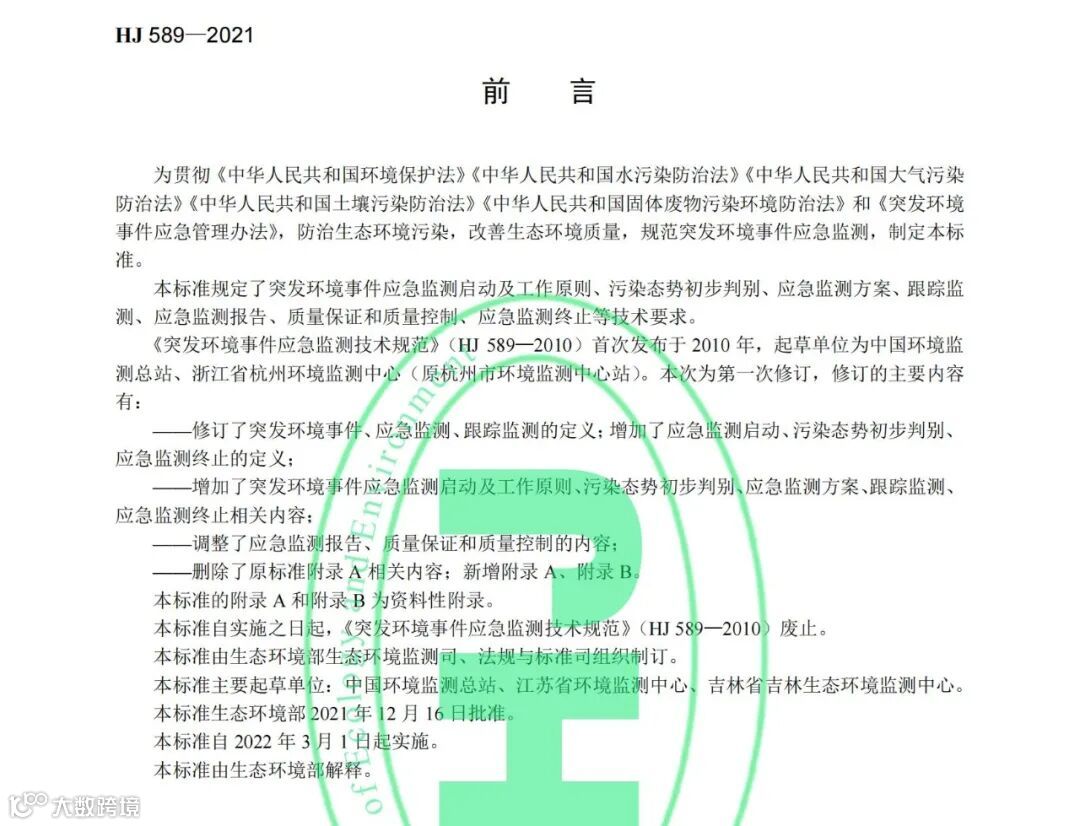 《突发环境事件应急监测技术规范》(HJ 589-2021)