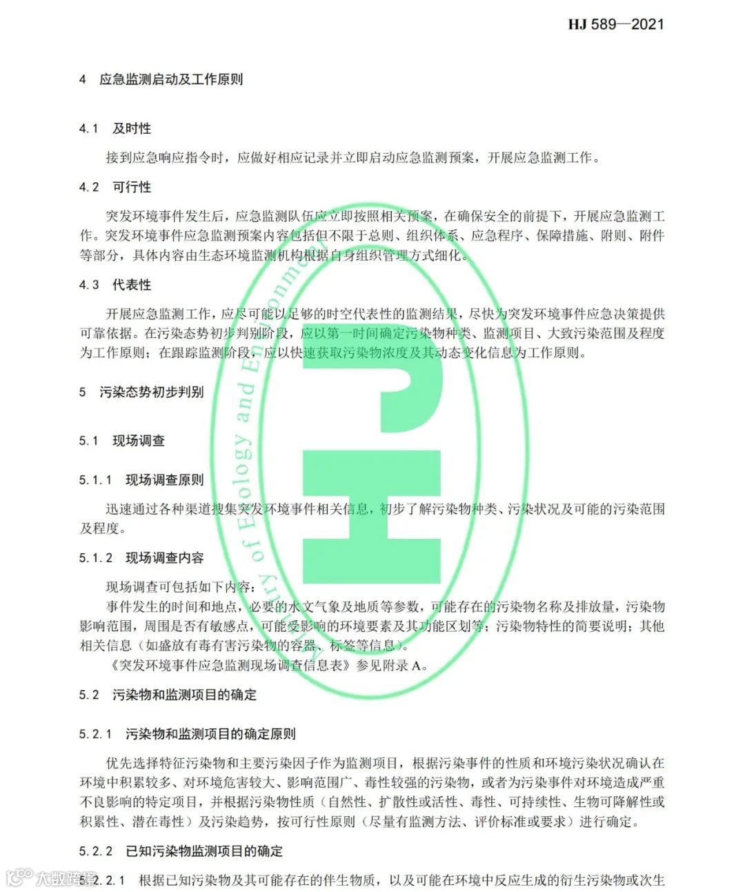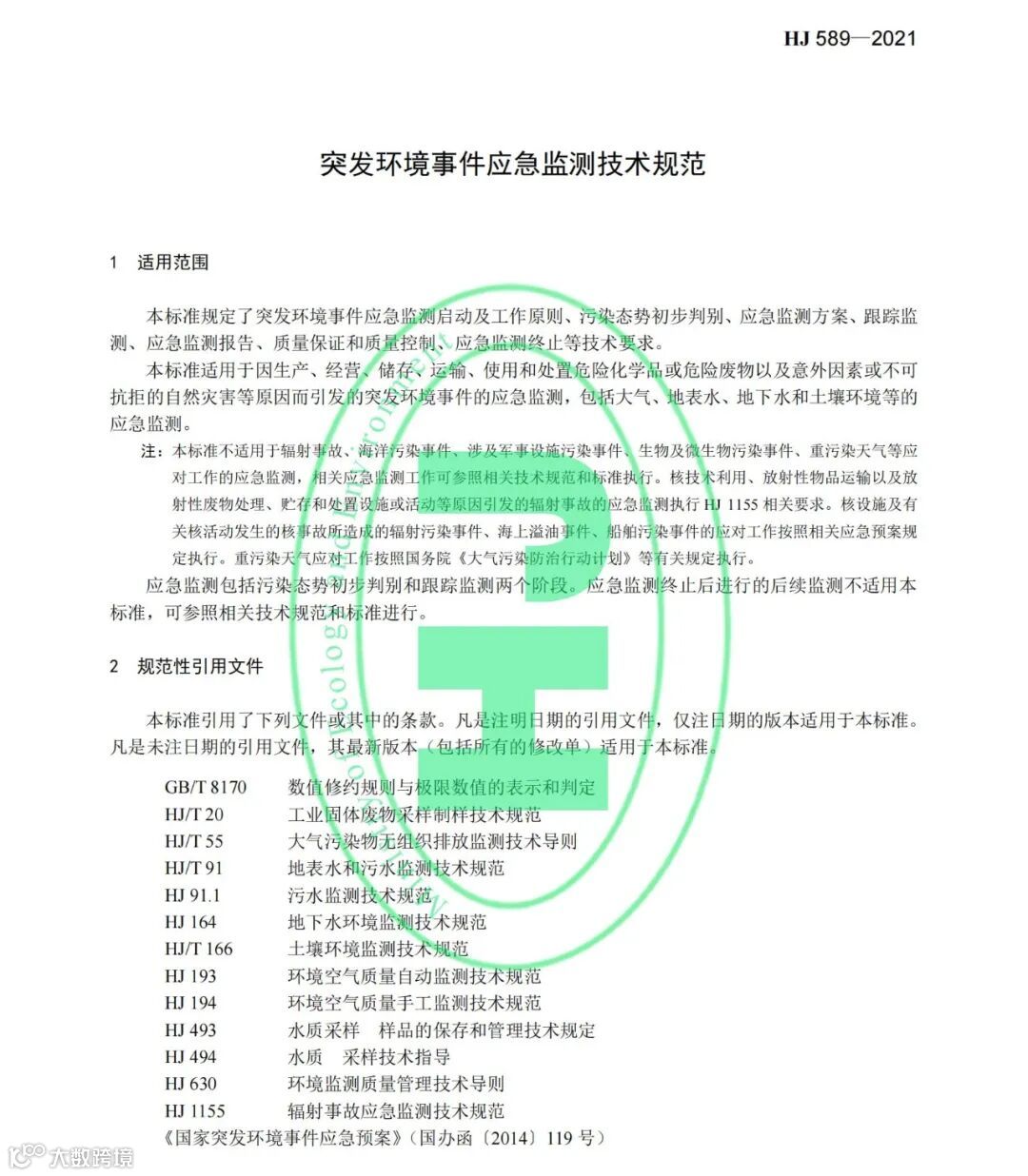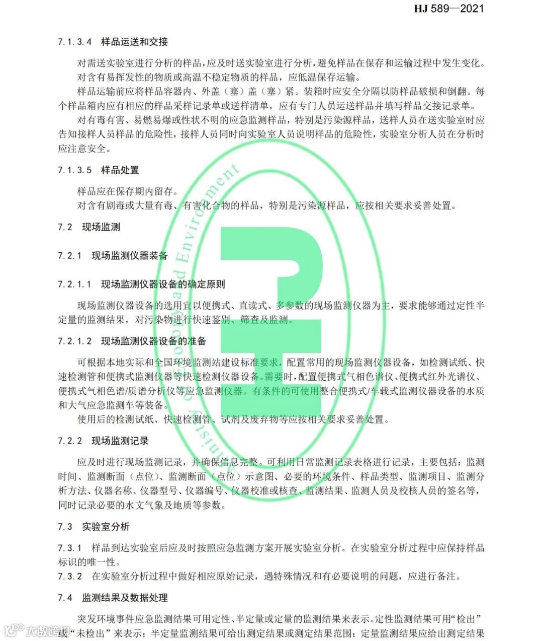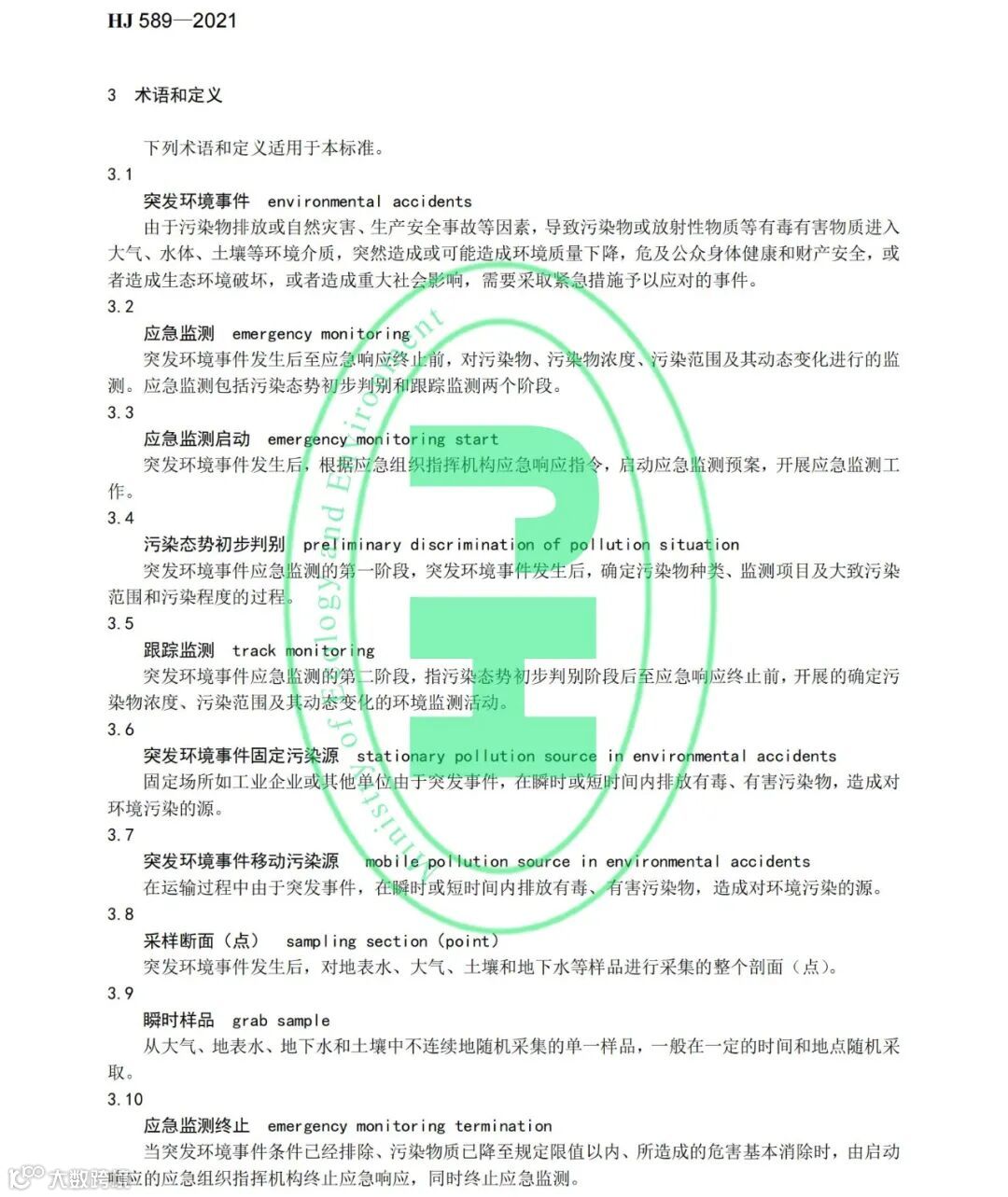 《突发环境事件应急监测技术规范》(HJ 589-2021)