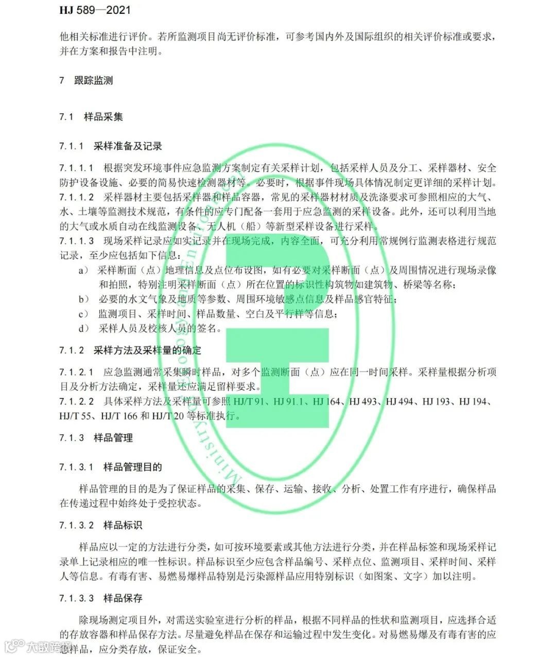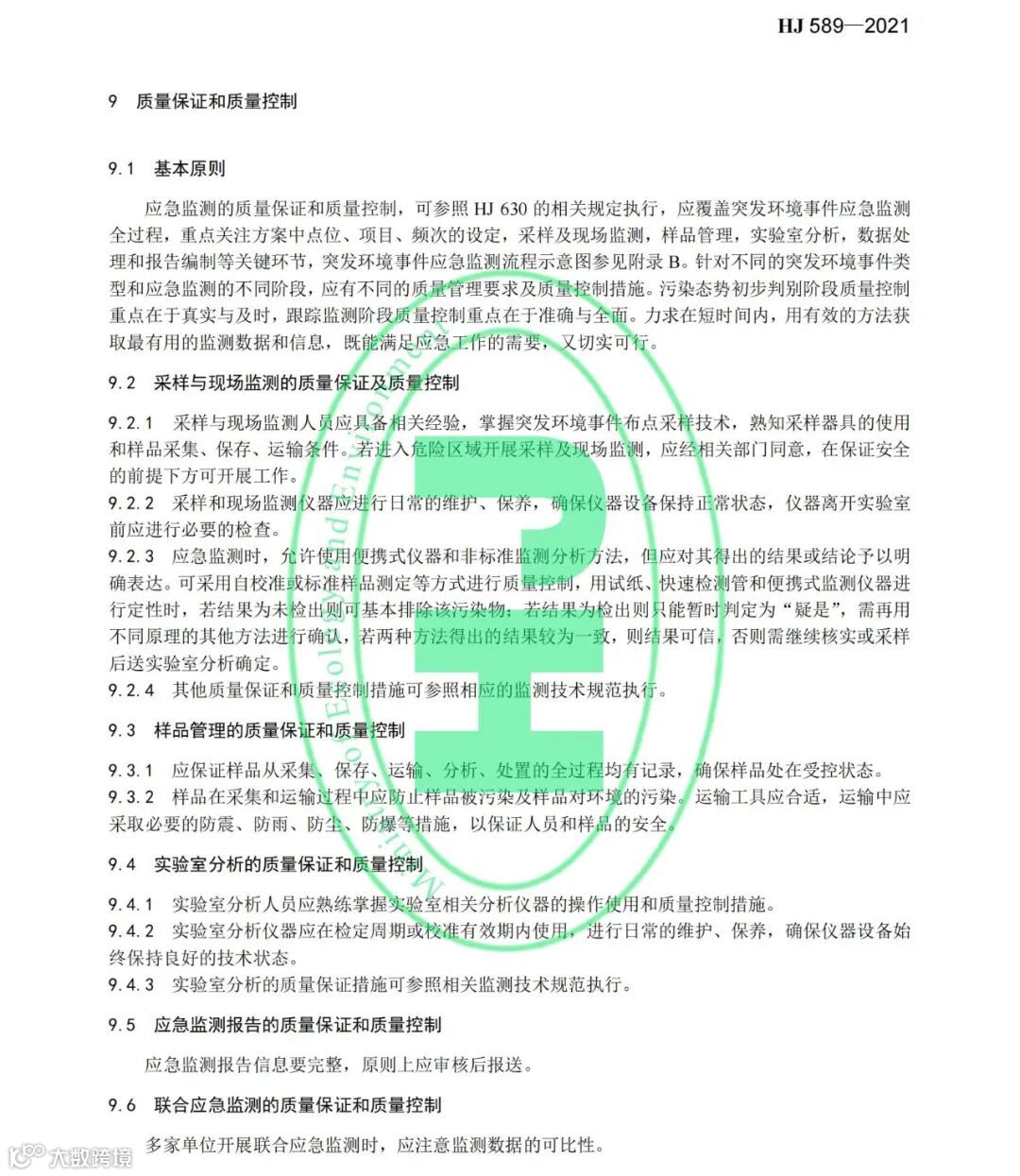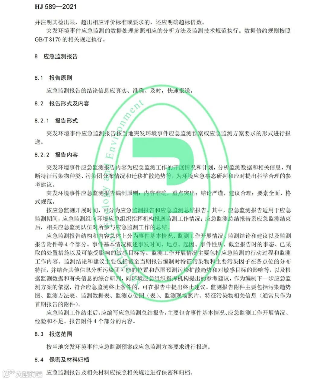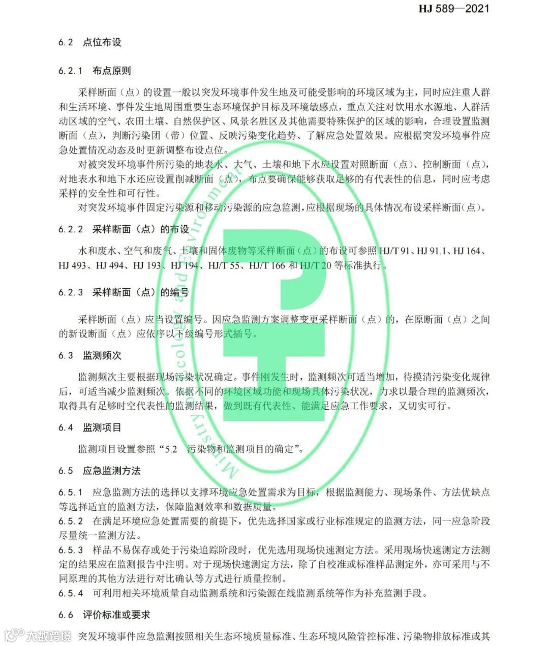 《突发环境事件应急监测技术规范》(HJ 589-2021)