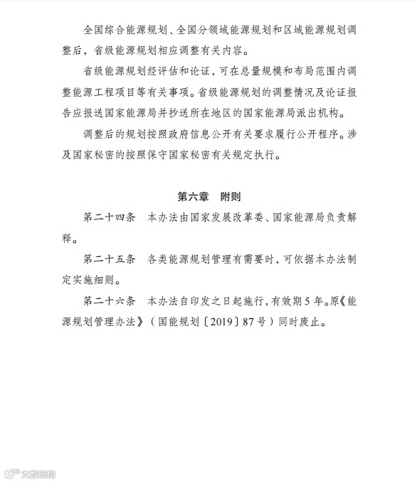 文件指出,办法自印发之日起施行,有效期5年。原《能源规划管理办法》(国能规划〔2019〕87号)同时废止。