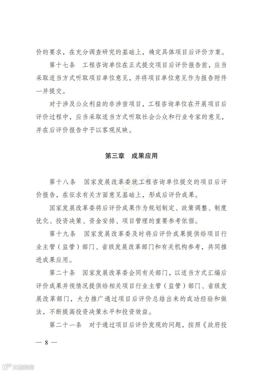 后评价成果作为规划、政策、制度、投资决策等的参考依据。