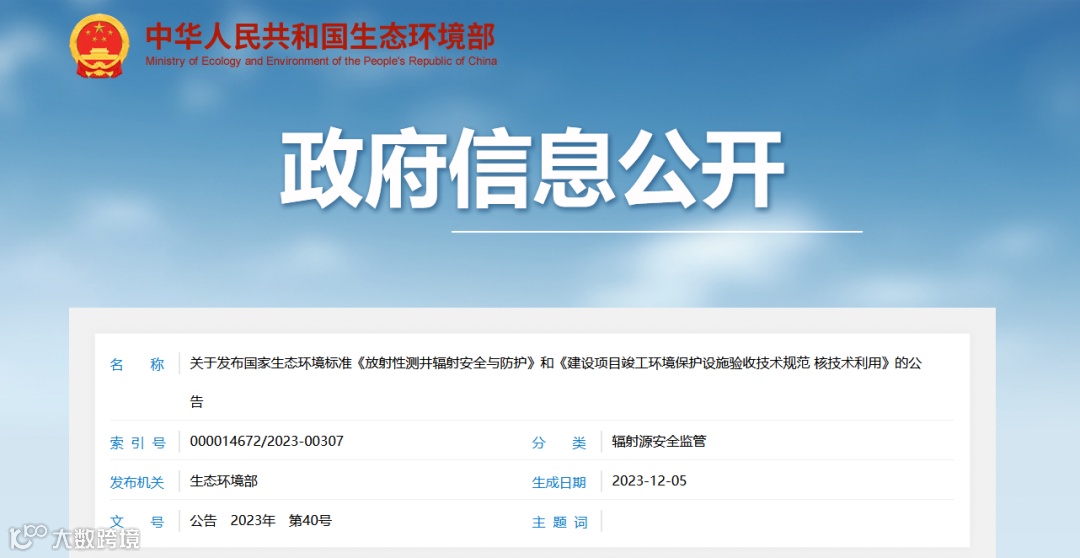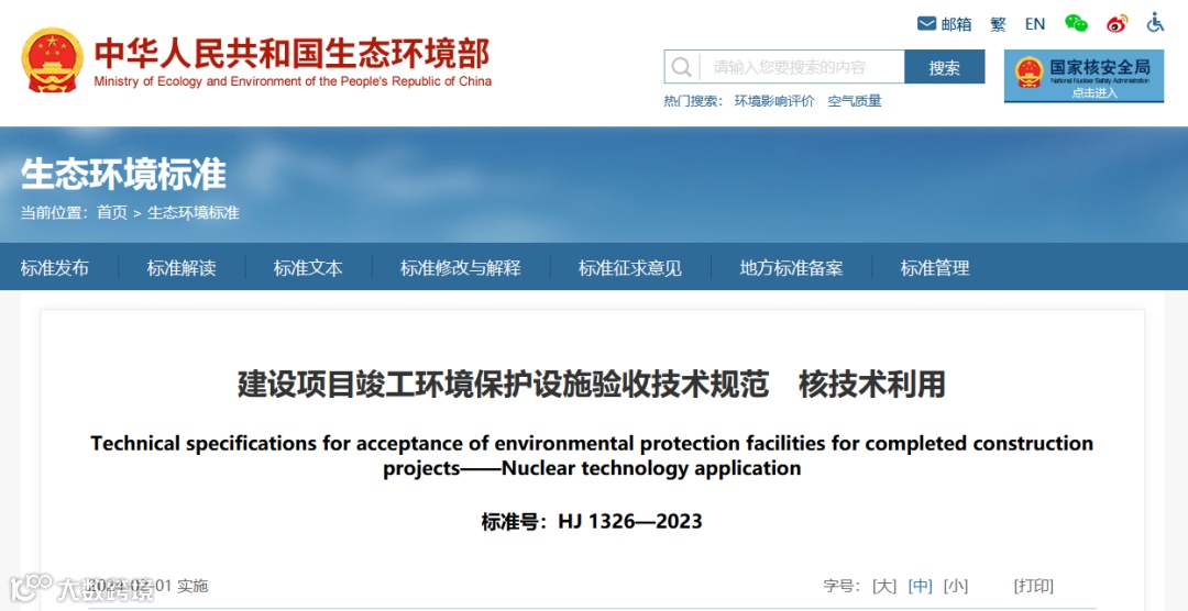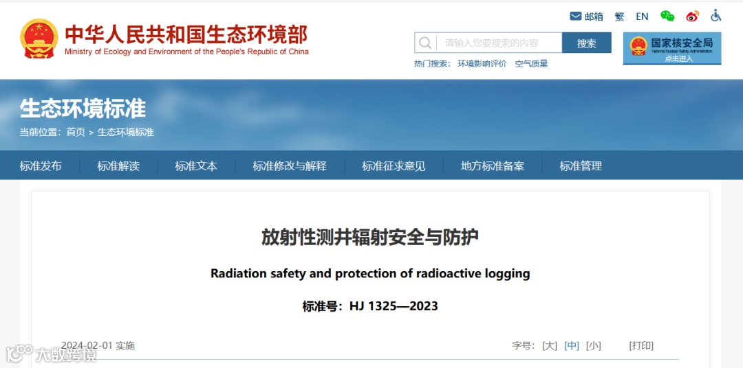 关于发布国家生态环境标准《放射性测井辐射安全与防护》和《建设项目竣工环境保护设施验收技术规范 核技术利用》的公告