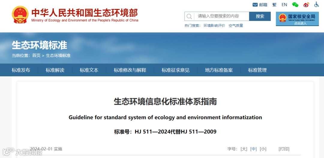 以上标准自2024年2月1日起实施,自实施之日起,《环境信息化标准指南》(HJ511-2009)废止。