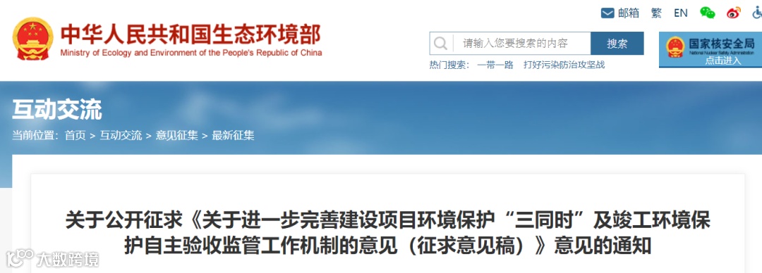 关于公开征求《关于进一步完善建设项目环境保护“三同时”及竣工环境保护自主验收监管工作机制的意见(征求意见稿)》意见的通知