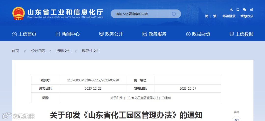 关于印发《山东省化工园区管理办法》的通知