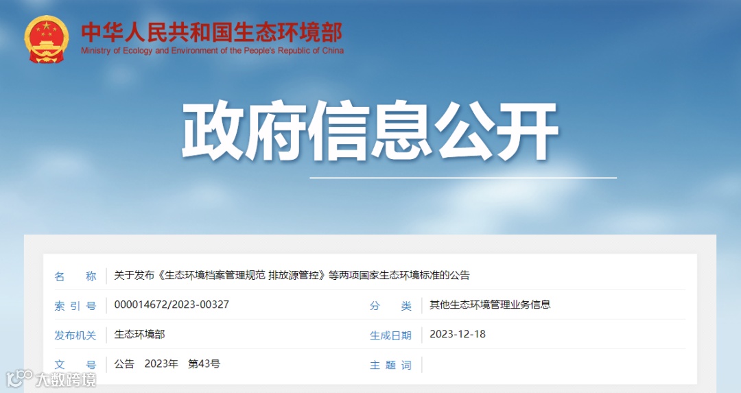 关于发布《生态环境档案管理规范 排放源管控》等两项国家生态环境标准的公告