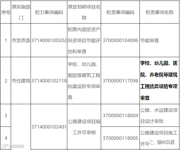 为持续深化相对集中行政许可权改革,进一步放大“一枚印章管审批”的改革效应,提高行政审批效率,根据《关于推进相对集中行政许可权改革组建市行政审批服务局的实施意见》(德政办字〔2018〕111号)要求,德州将市发展改革委、市科技局、市住房城乡建设局、市交通运输局、市水利局、市文化和旅游局等6个部门实施的36项行政许可事项划转至市审批服务局。