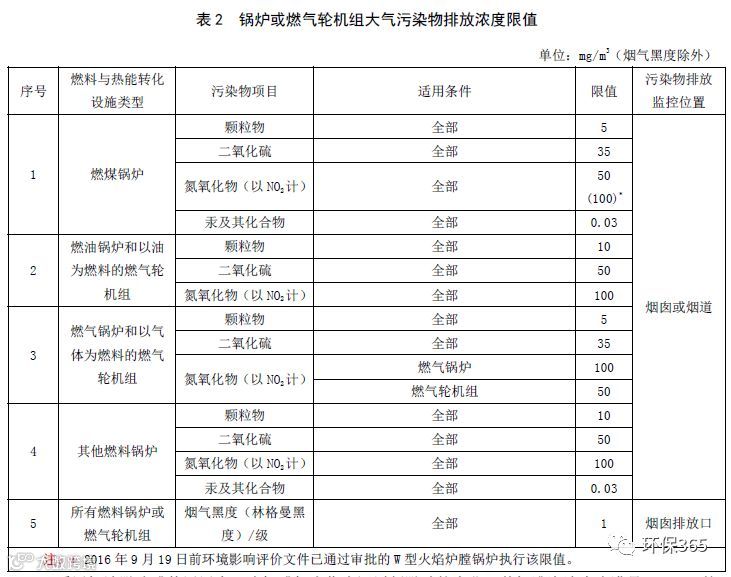 2020 年1月1日起,所有锅炉或燃气轮机组执行表2 中的排放浓度限值。