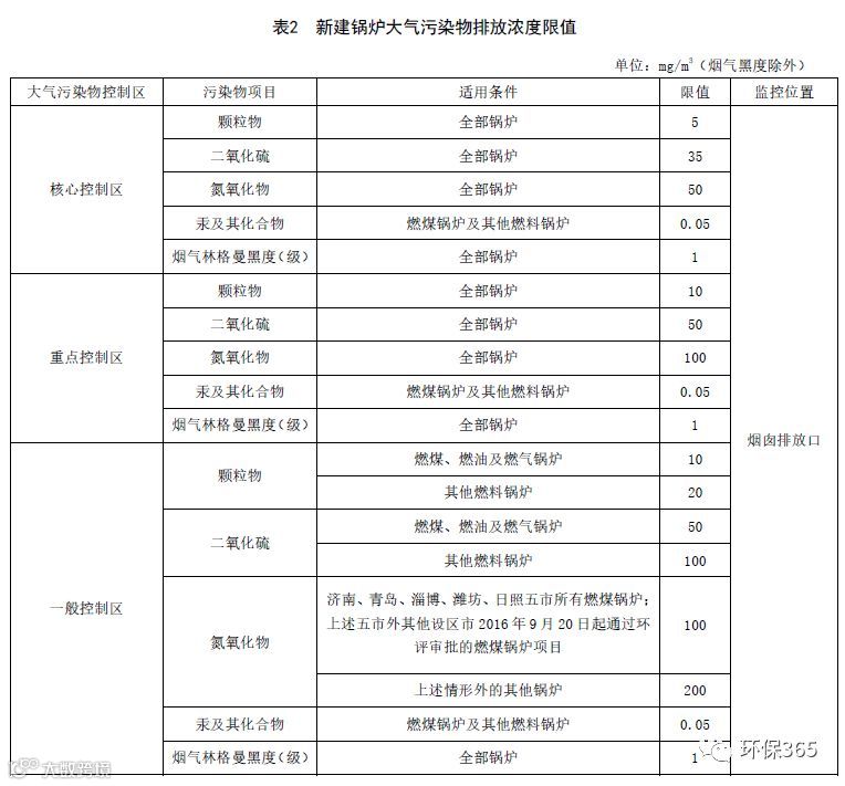 2020年1月1日起,现有燃油、燃气和其他燃料锅炉按所在控制区执行表2中的排放浓度限值。
