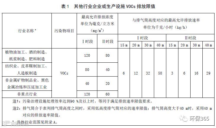 自2020年1月1日起,现有企业按所属行业执行表1 中Ⅱ时段的排放限值。