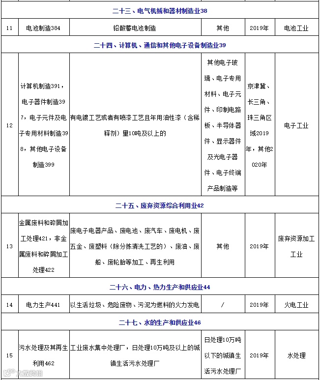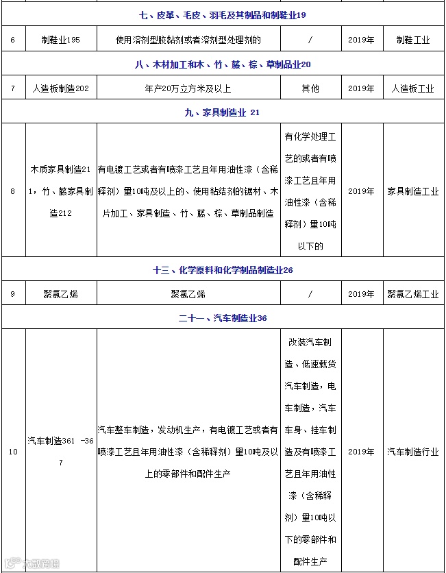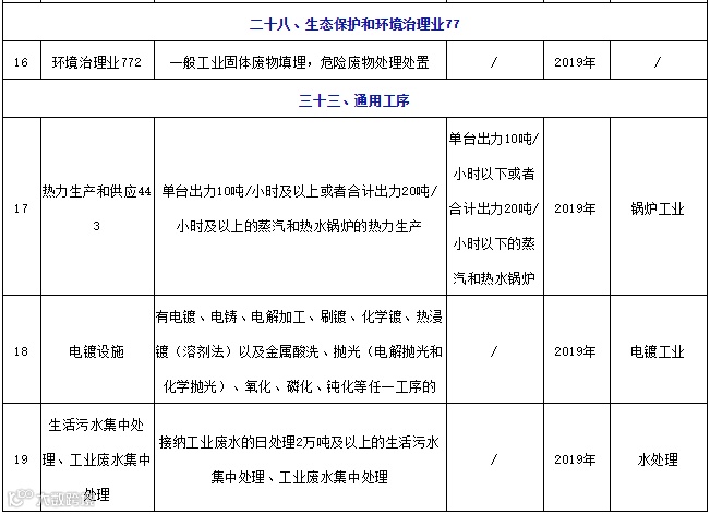2019年需办理国家排污许可证行业清单