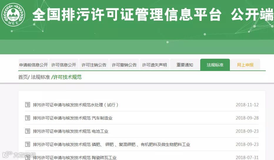 查看行业技术规范信息,请通过生态环保部官方网址: