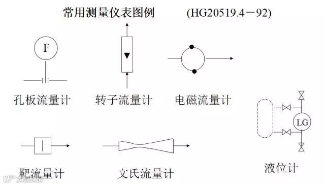 仪表控制点的符号图形一般用细实线绘制,符号图形、各种执行机构和调节阀的符号在图例中也可以找到。仪表图形符号和字母代号组合起来,可以表示工业仪表所处理的被测变量和功能,或表示仪表、设备、元件、管线的名称;字母代号和阿拉伯数字编号组合起来,就组成了仪表的位号。