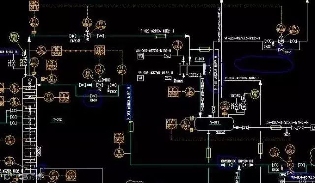 带控制点的工艺流程图也称管道及仪表流程图。从这张例图中,我们可以看出,PID图由设备、管道、仪表三部分组成,让我们分别来看一下,这三部分应该如何视图,常用图例又有哪些。